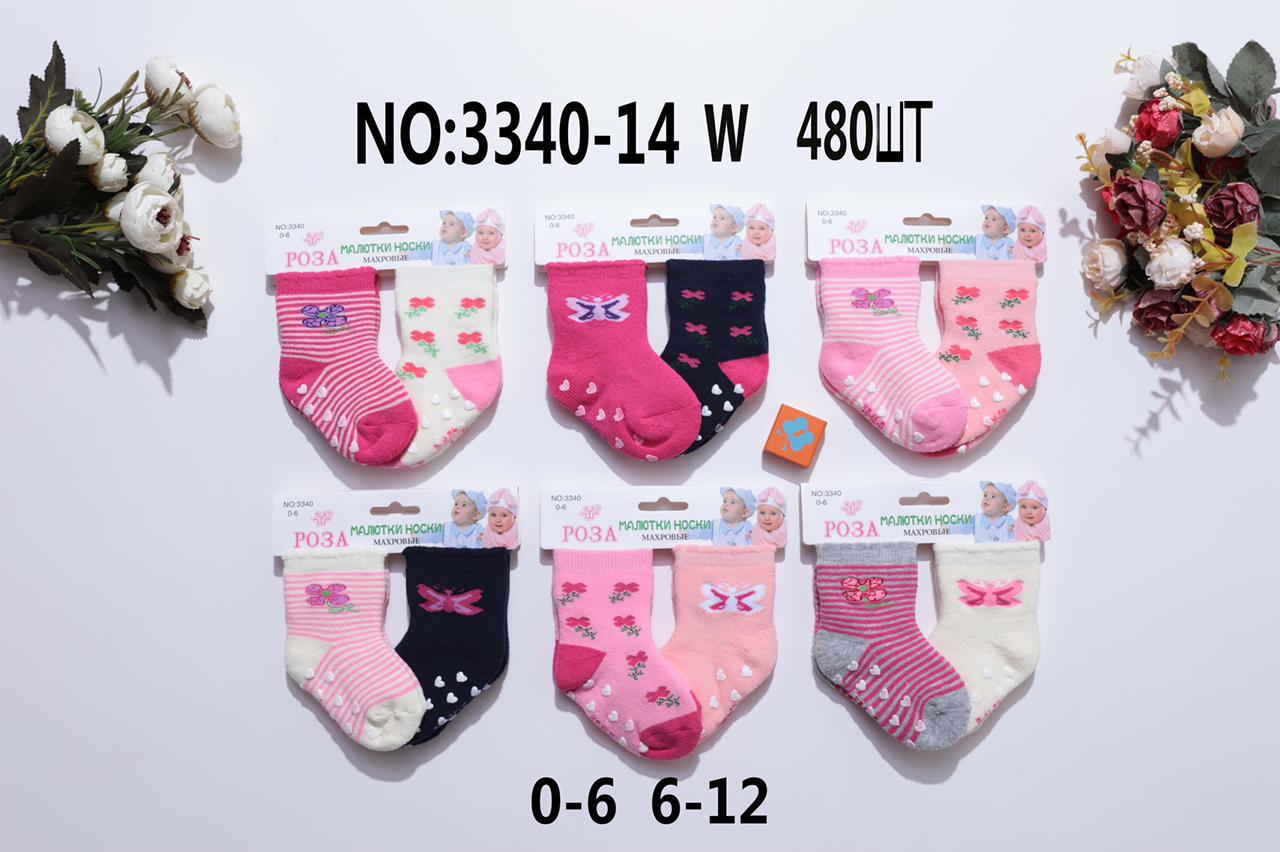 НОСКИ ХЛОПОК МАХРОВЫЕ БЕБИКИ С ТОРМОЗАМИ НА ДЕВОЧКУ РОЗА 3340-14