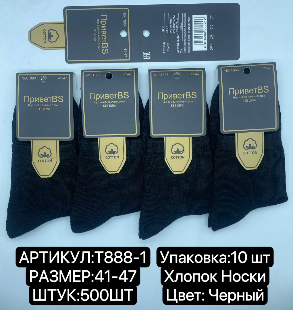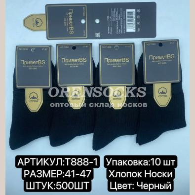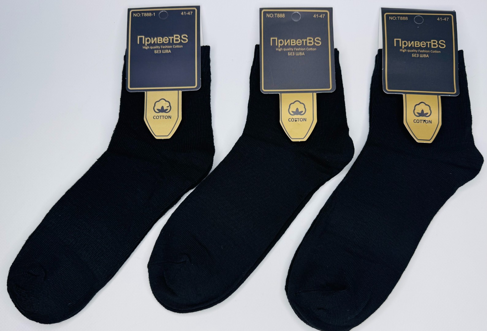 НОСКИ МУЖСКИЕ ХЛОПОК ЧЕРНЫЕ ФИРМЫ ПРИВЕТ T888-1