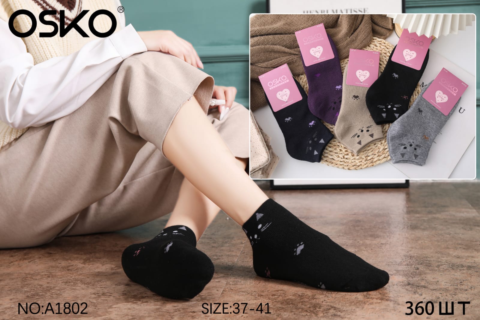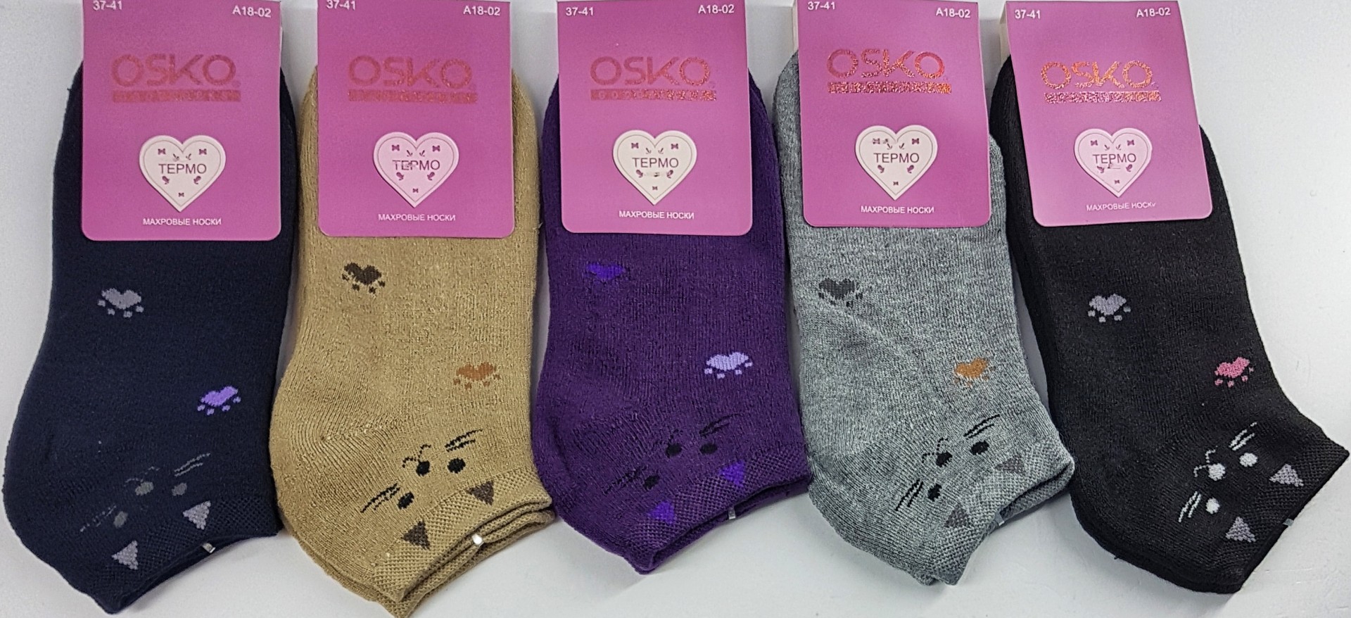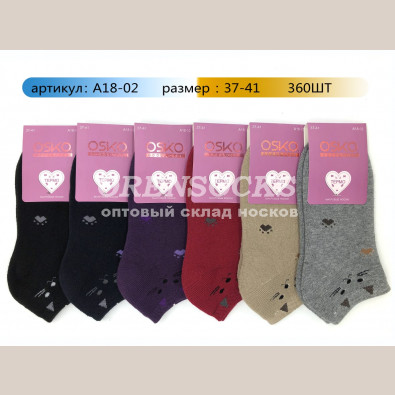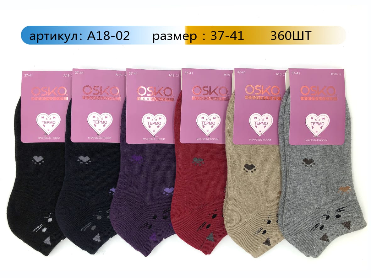 НОСКИ ЖЕНСКИЕ УКОРОЧЕННЫЕ ХЛОПОК МАХРОВЫЕ ОТЛИЧНОГО КАЧЕСТВА OSKO АССОРТИ A1802