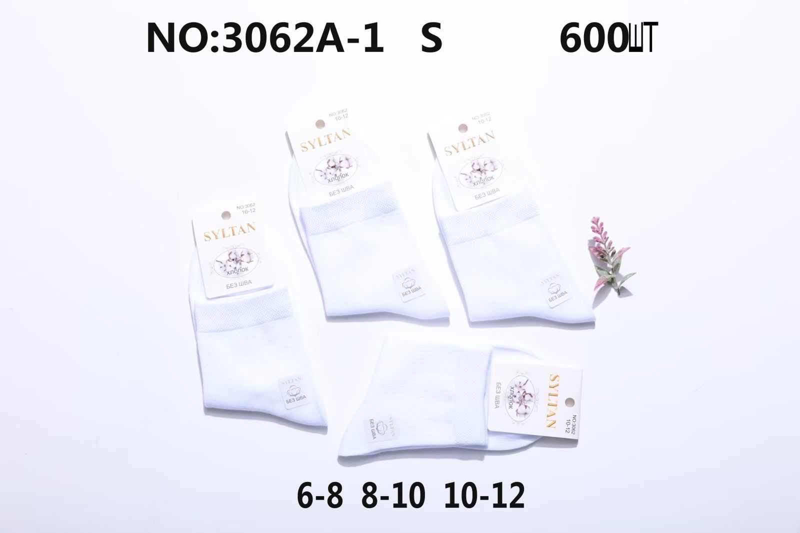 БЕЛЫЕ НОСКИ ПОДРОСТОК ХЛОПОК SYLTAN 3062A