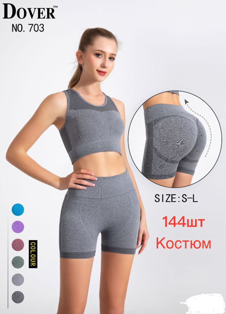 КОСТЮМ ДЛЯ ЗАНЯТИЙ СПОРТОМ (ВЕЛОСИПЕДКИ С ПОДТЯГИВАЮЩИМ ЭФФЕКТОМ+ТОП) АССОРТИ DOVER 703