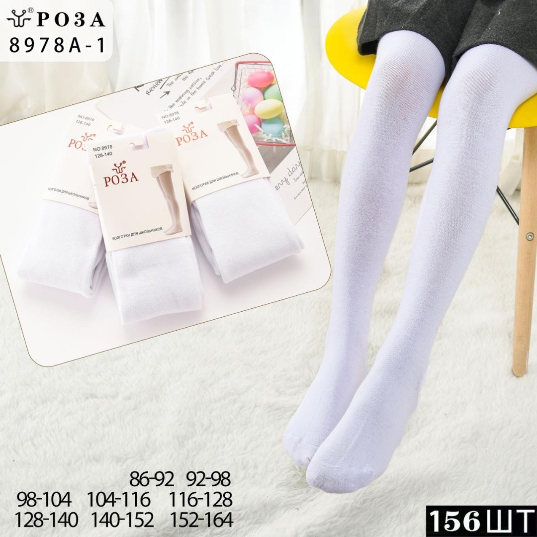 КОЛГОТКИ ДЕТСКИЕ ДЛЯ ШКОЛЬНИЦ ХЛОПОК БЕЛЫЕ РОЗА 8978 9941